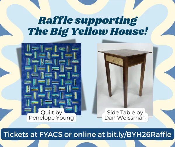 Follow Your Art is holding a raffle in January, with proceeds supporting the capital campaign to purchase The Big Yellow House.* Each $20 raffle ticket is a chance to win high-quality, handmade items from talented artisans in our community.